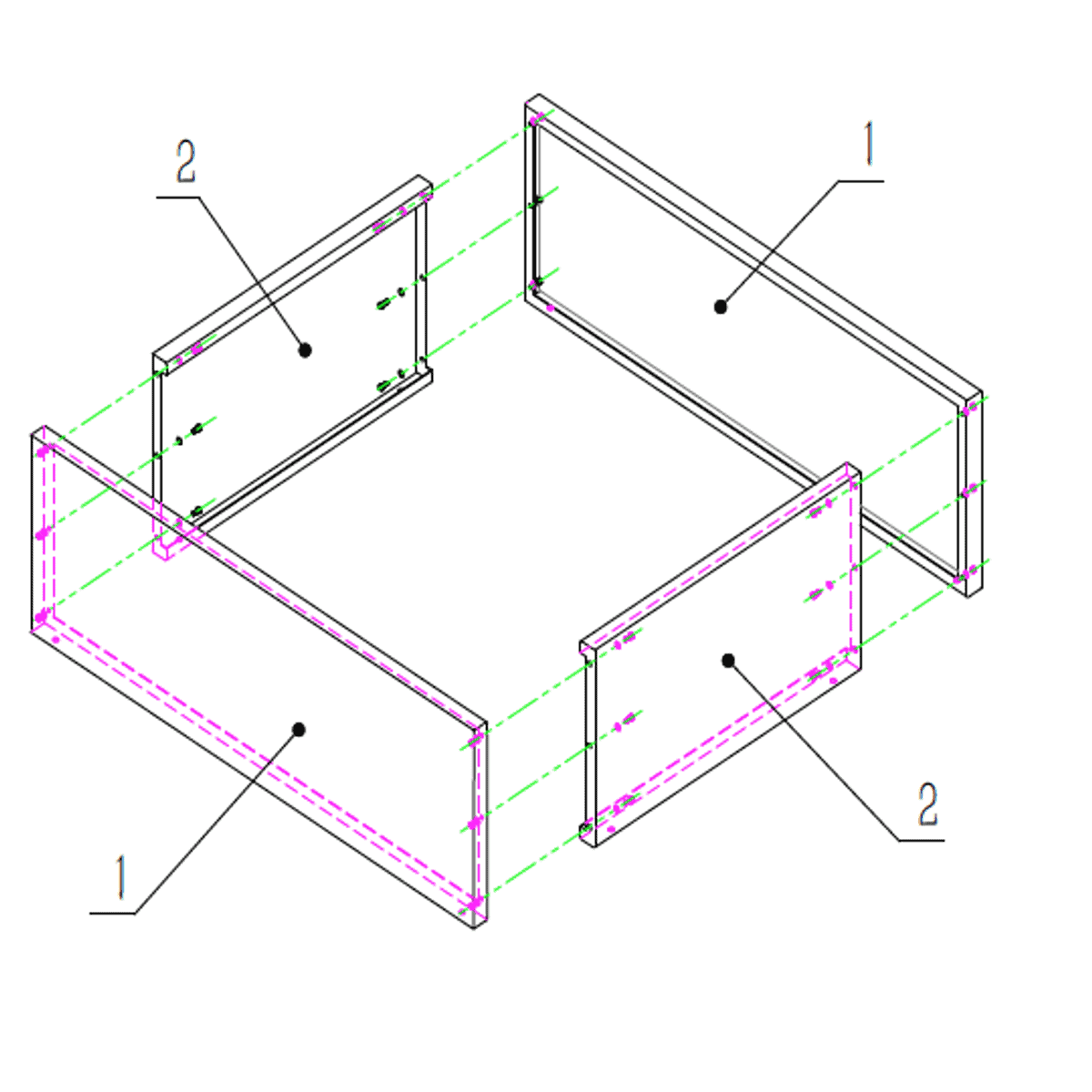 Denne kassen er svært rotasjonsstiv selv om tykkelsen på stålet ikke er mer en 2 mm. Dette oppnås ved at alle platene er bøyd innover med to kanter. Bredden på overkanten er 30 mm. Størrelsen er 40 cm høy, med lengde/bredde fra 40 - 180 cm. Produktet leveres flatpakket, med 12 sett mutter, skrue og skiver.