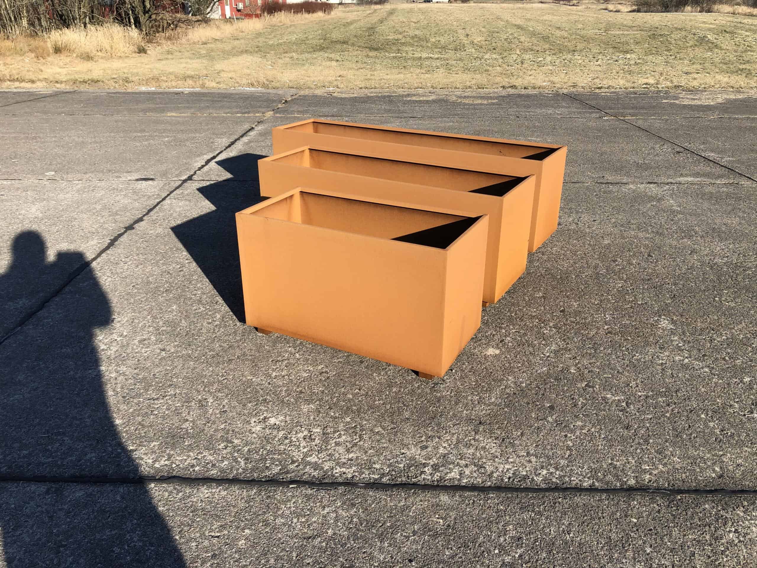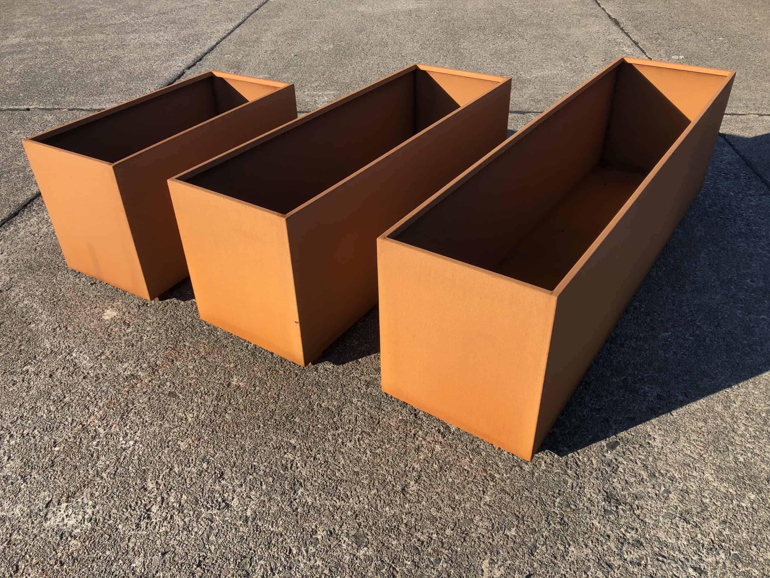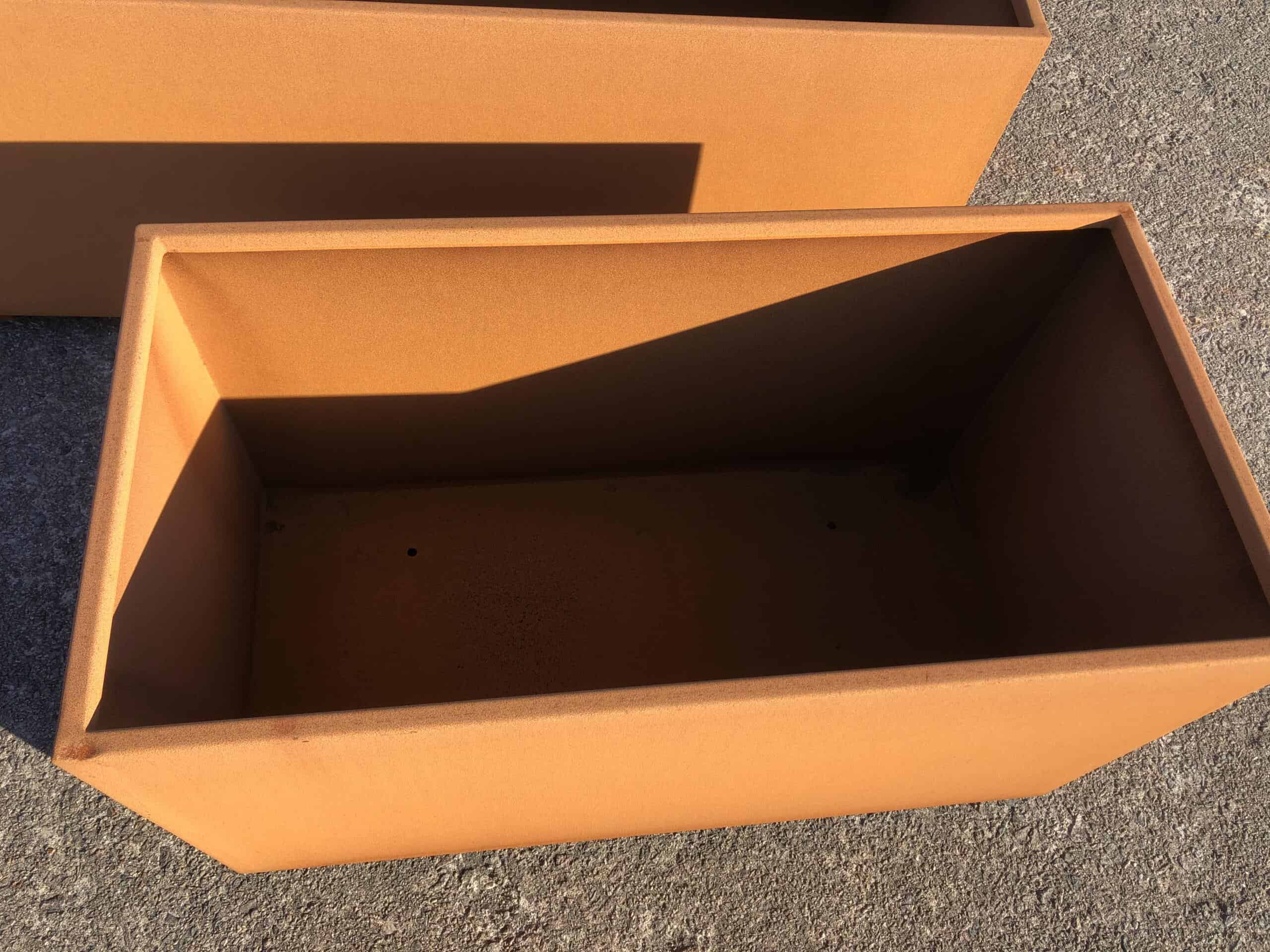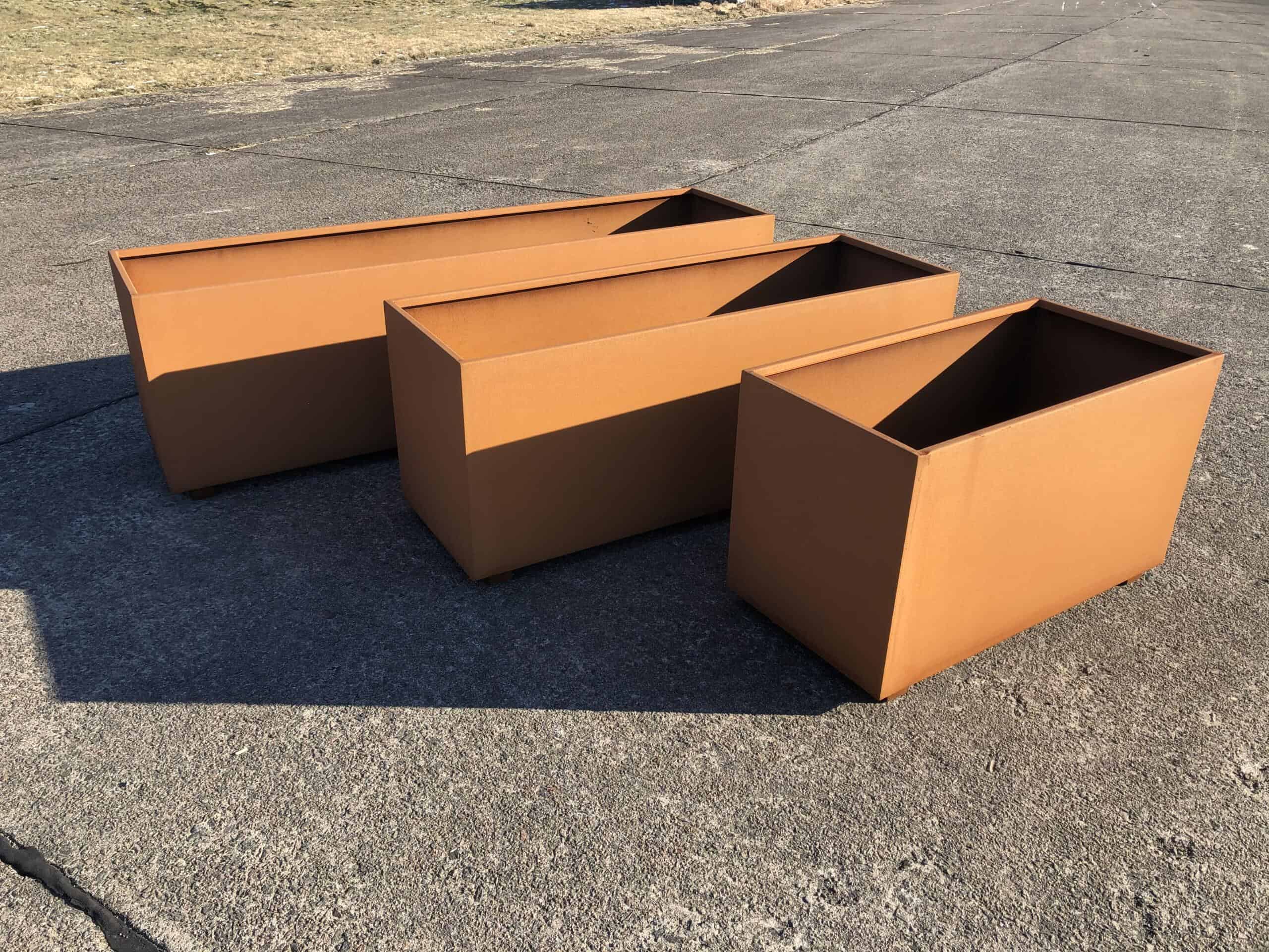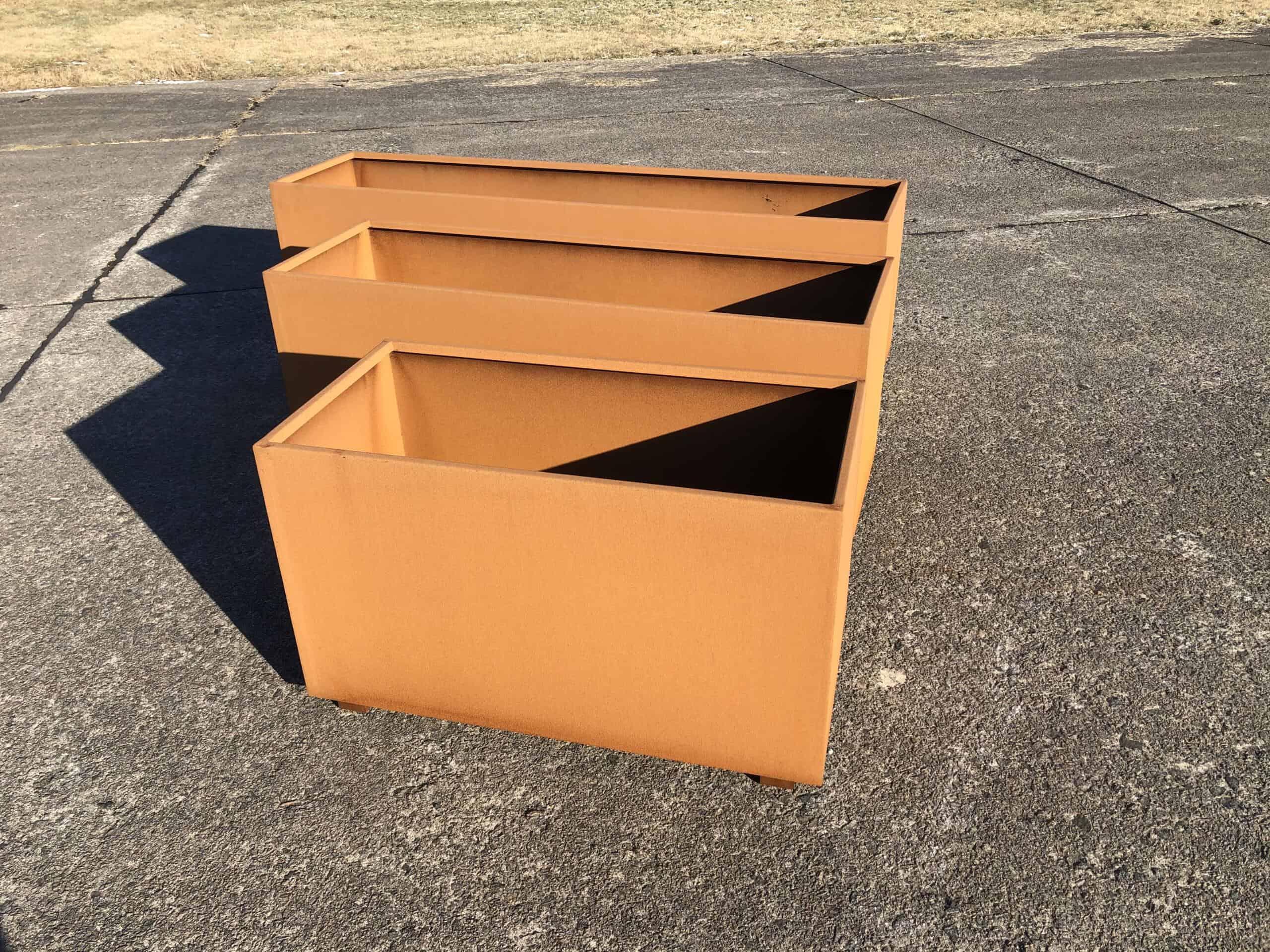 Corten stål har den egenskapen at den ruster. Rusten legger seg som en beskyttende hinne på stålet som gjør at stålet ruster svært langsomt. Denne plantekassen vil vare i mange år eller tiår.