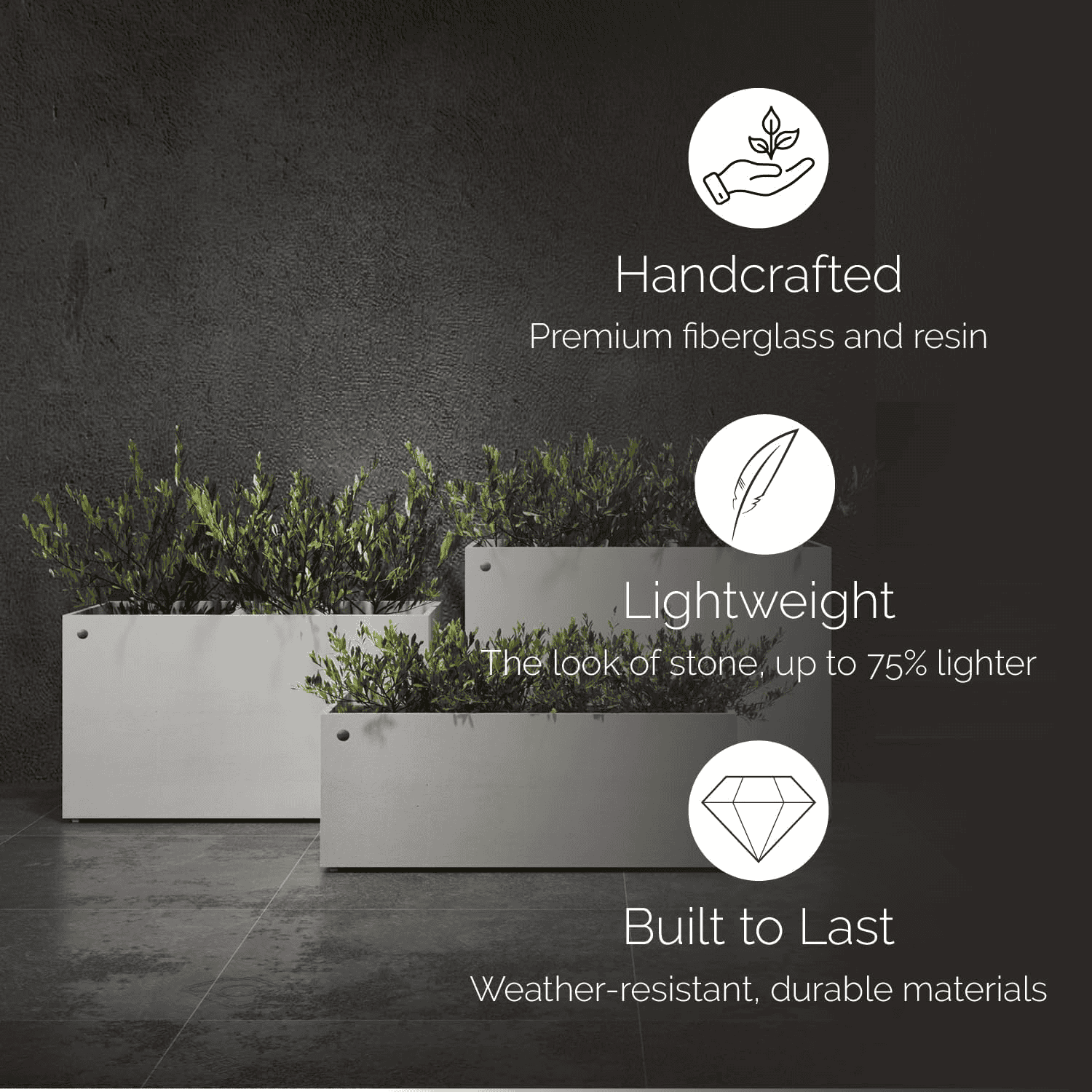 Cosapots er en eksklusiv serie håndlagde blomsterpotter og plantekasser designet for å skape inntrykk og vare lenge. Hver potte er laget av førsteklasses polyester, glassfiber og naturlige tilsetningsstoffer, noe som gir en lett, men robust konstruksjon. De seks naturlige steintonene i Cosapots-kolleksjonen oppnås gjennom nøye utvalgte materialer og fargestoffer, noe som sikrer et tidløst og elegant utseende. Disse unike kunstverkene er skapt av dyktige håndverkere og passer perfekt for både innendørs og utendørs bruk, og tilfører ethvert rom eller hage et snev av raffinement.